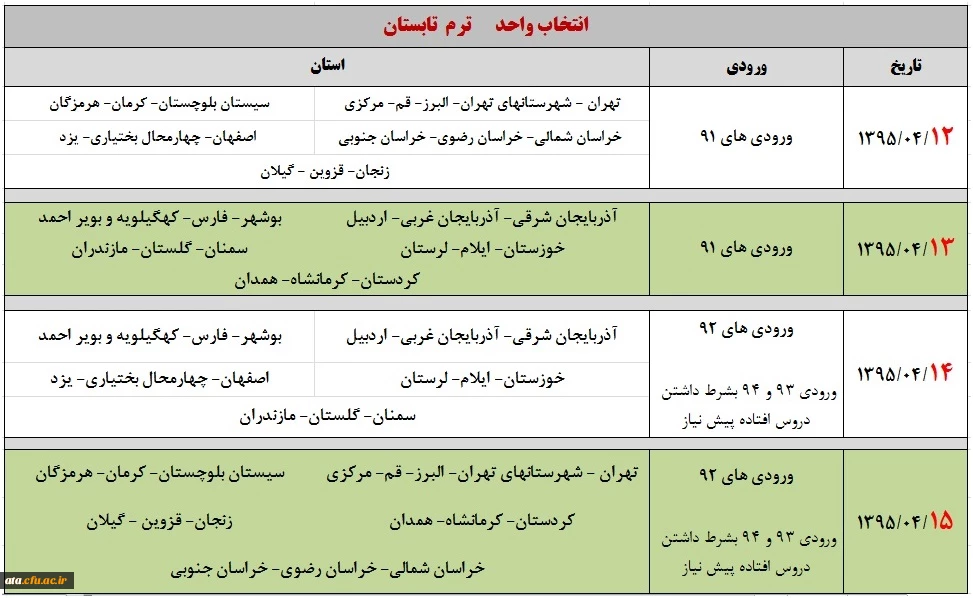 انتخاب واحد نیمسال تابستان ( 943) 2
