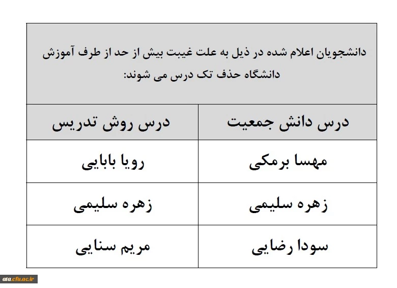 اعلام حذف آموزشی درس دانشجویان به جهت غیبت 2