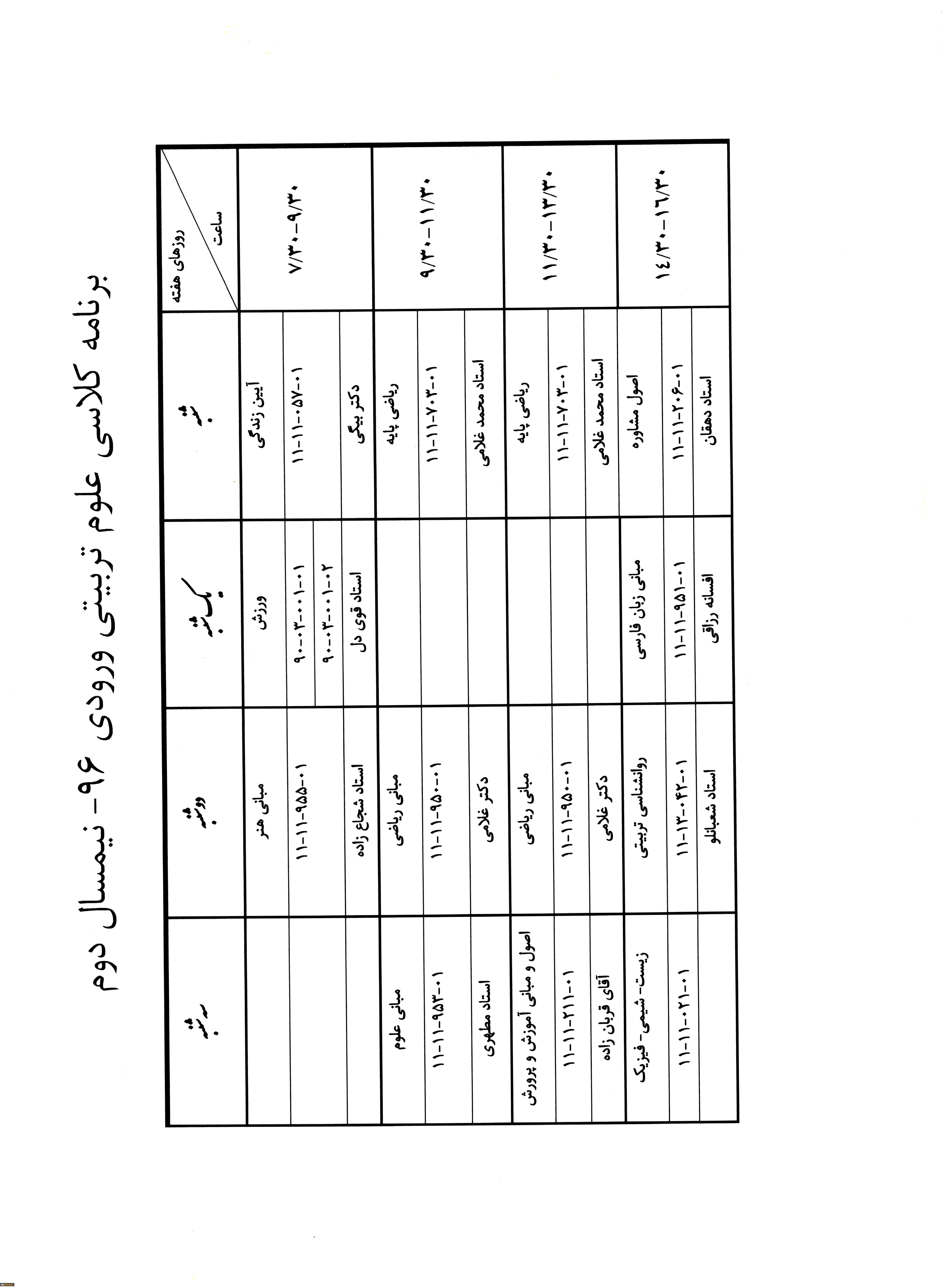 برنامه کلاسی دانشجویان علوم تربیتی ورودی 96 در نوبت دوم 3