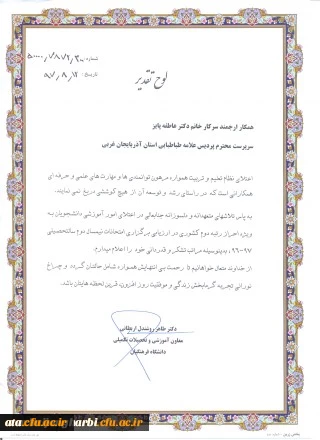 کسب رتبه دوم کشوری پردیس علامه طباطبایی ارومیه در ارزیابی برگزاری امتحانات نیمسال دوم سال تحصیلی97-96 2