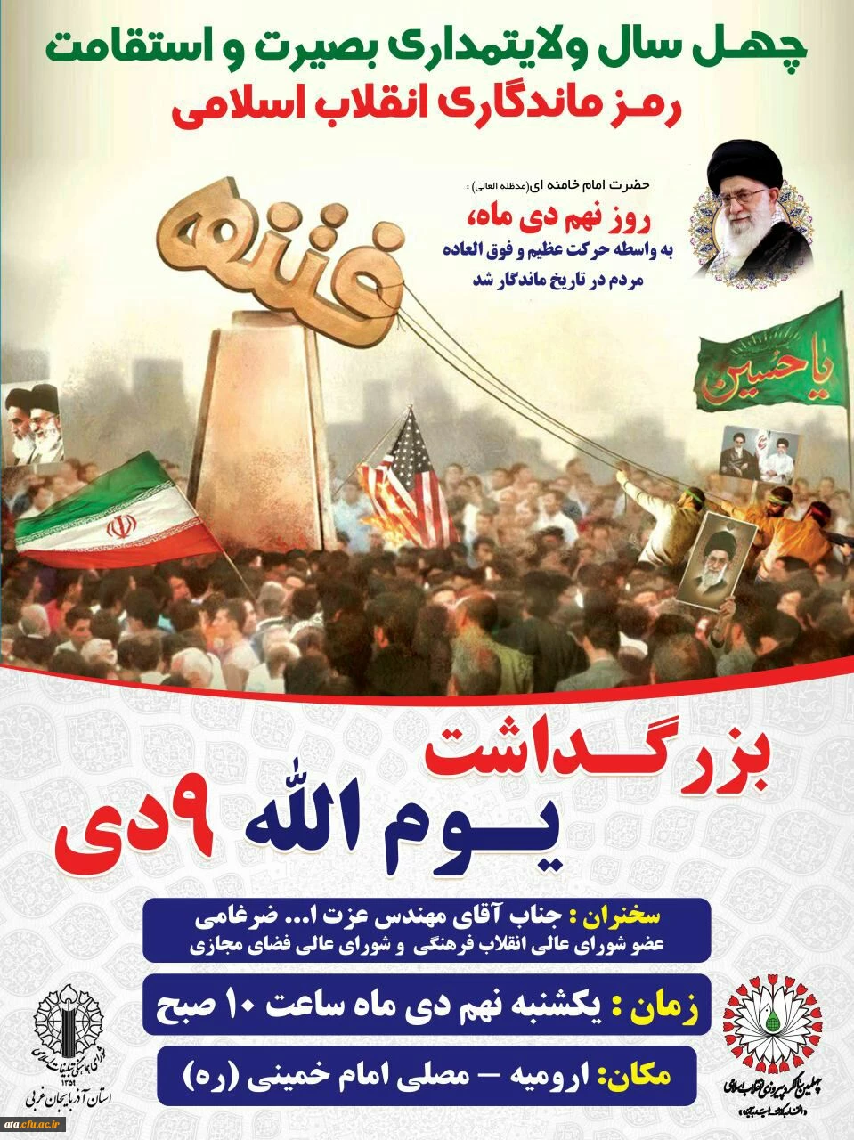 دعوت از دانشجویان، اساتید و کارکنان دانشگاه فرهنگیان استان ذربایجان غربی جهت شرکت در مراسم بزرگداشت یوم الله 9 دی 2