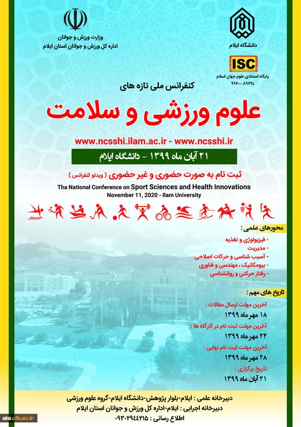 امتیاز دهید : فراخوان کنفرانس ملی تازه های علوم ورزشی و سلامت به میزبانی دانشگاه ایلام 2 چهارشنبه 25 تیر 1399 ساعت 8:14