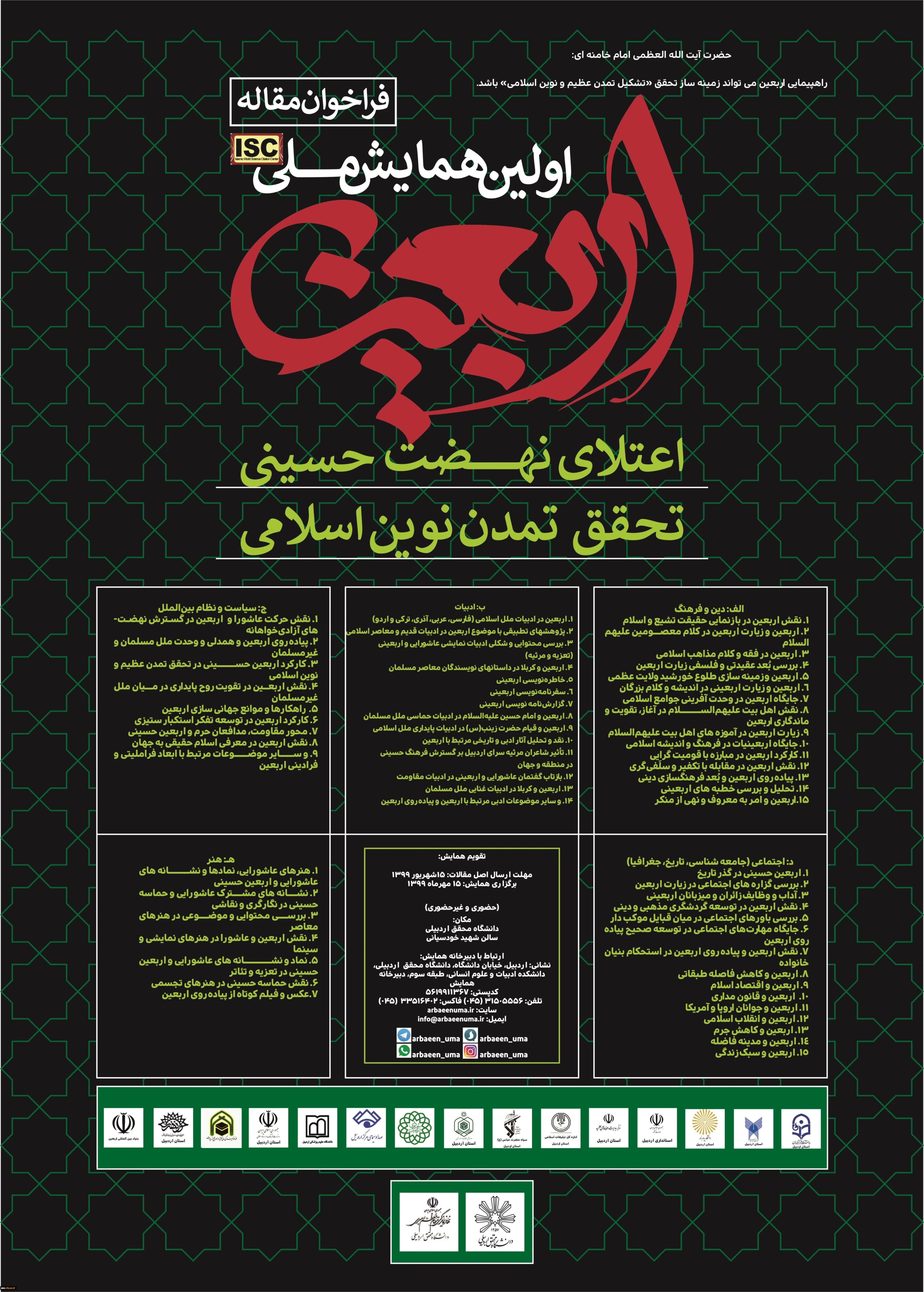 امتیاز دهید : فراخوان مقاله اولین همایش ملی اربعین اعتلای نهضت حسینی، تحقق تمدن نوین اسلامی 2 سهشنبه 25 شهریور 1399 ساعت 13:21