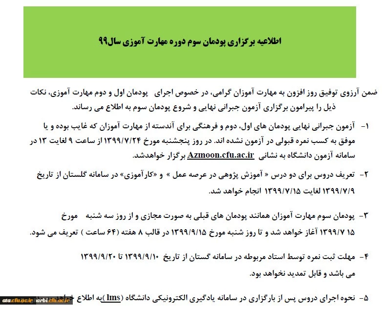 اطلاعیه برگزاری پودمان سوم دوره مهارت آموزی سال99 2