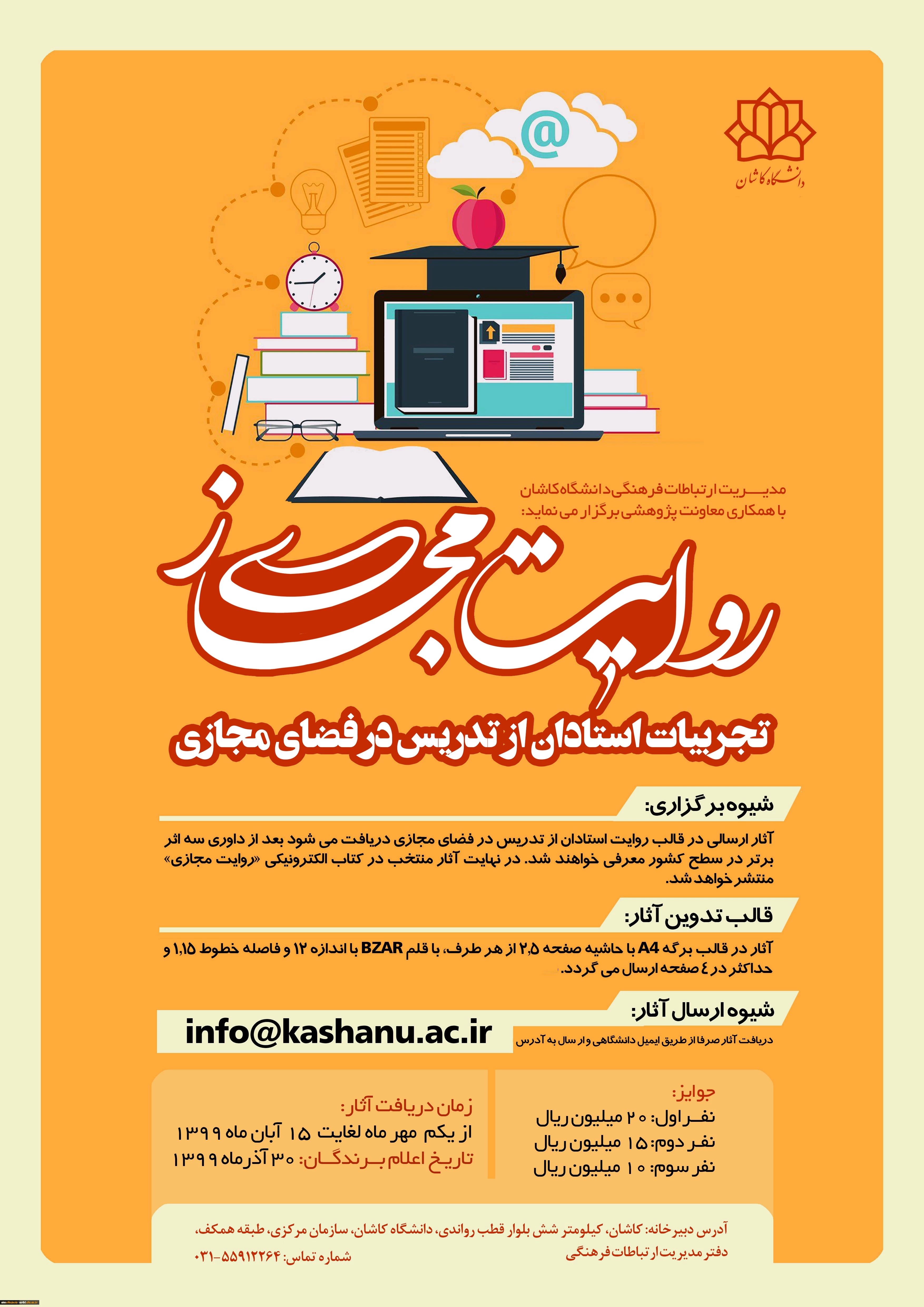 امتیاز دهید : فراخوان مسابقه روایت مجازی: تجربیات استادان در تدریس مجازی (دانشگاه کاشان) 2 یکشنبه 4 آبان 1399 ساعت 23:00