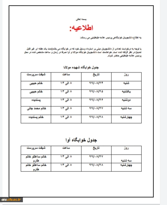 زمان بندی استرداد وسایل شخصی دانشجویان 2