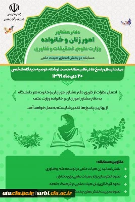 امتیاز دهید : مسابقه دفتر مشاوره امور زنان و خانواده وزارت علوم، تحقیقات و فناوری 3 سهشنبه 27 آبان 1399 ساعت 10:56